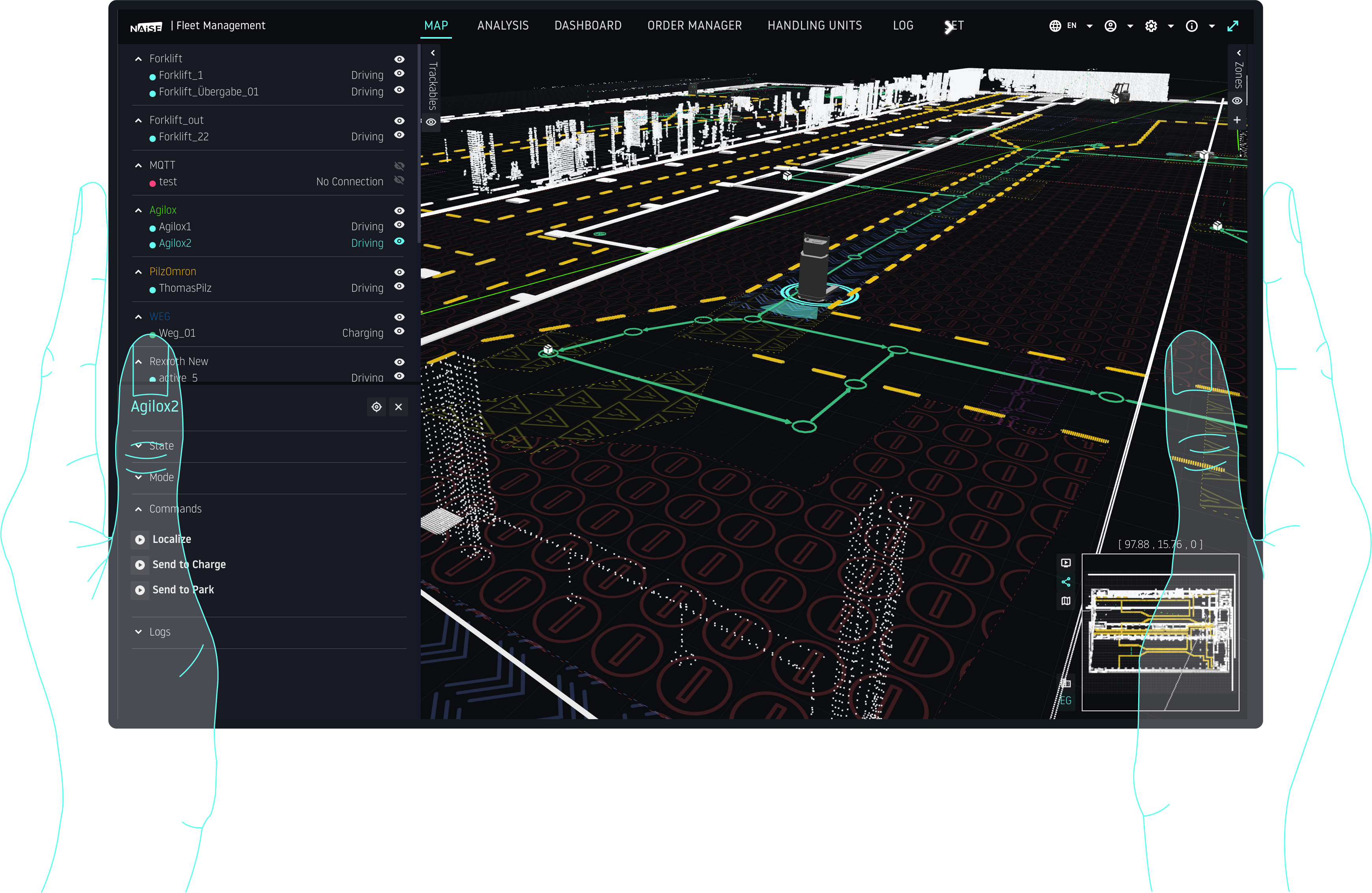 NAiSE Fleet Manager connects all participants—automated or manual—into a single unified system. It also aligns maps to ensure every vehicle and robot navigates consistently across the environment.