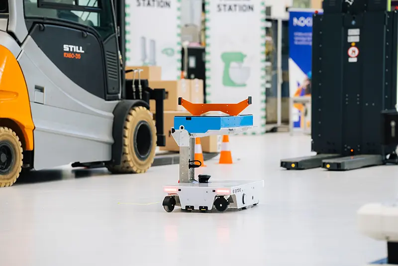 The NAiSE Fleet Manager is a manufacturer-independent solution that unifies all traffic participants in intralogistics into one intelligent system. By seamlessly integrating mobile robots, forklifts, tugger trains, and other automated or manual vehicles, it ensures transparent communication, flexible deployment, and simple control. As part of the NAiSE Intralogistics Platform, the NAiSE Fleet Manager provides a central layer of logic and coordination, allowing operators to manage complex mixed fleets with ease and efficiency. Easily connect AGVs, AMRs, forklifts, tugger trains, or robots of any brand and standard into one unified system.