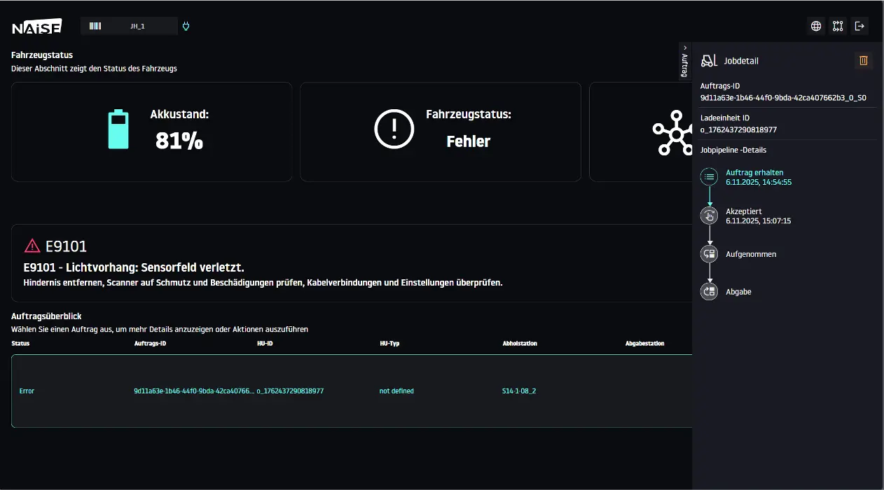 The NAiSE Fleet Manager runs in the background as part of the NAiSE Intralogistics Platform. Operators access all its functions through the NAiSE Management Control Center, keeping complex logic invisible but simple to use.