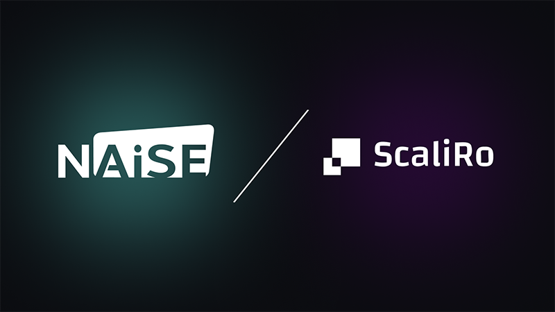 NAiSE and Waveye logos on a dark gradient background, symbolizing their partnership to bring 3D radar perception into intralogistics automation.